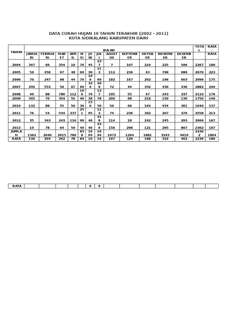 Data Curah Hujan 10 Tahun Terakhir Pdf Terkait Data