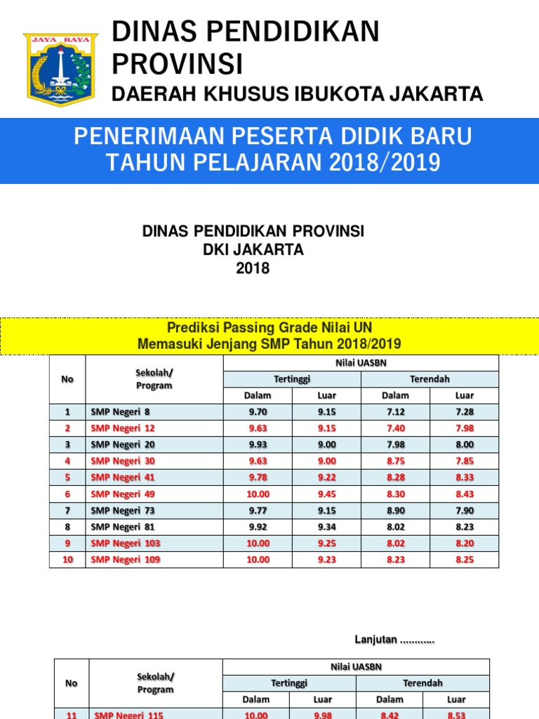 Nilai Nem Masuk Sma Negeri Jakarta Tahun 2017 2018 Dapatkan Data