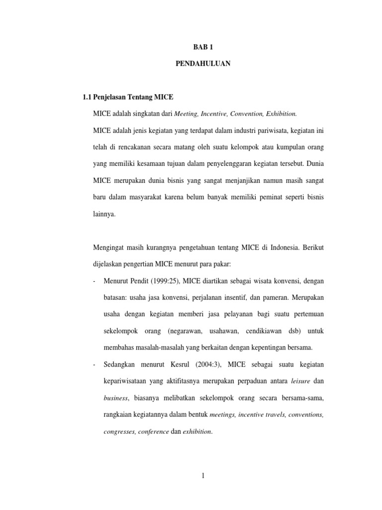 Artinya aksesibilitas tidak hanya sekedar kesediaan segala sesuatu namun juga kesediaan yang mudah dicapai. - Menurut Pendit 199925 MICE diartikan sebagai wisata konvensi dengan batasan. Berikut dijelaskan pengertian MICE menurut para pakar.