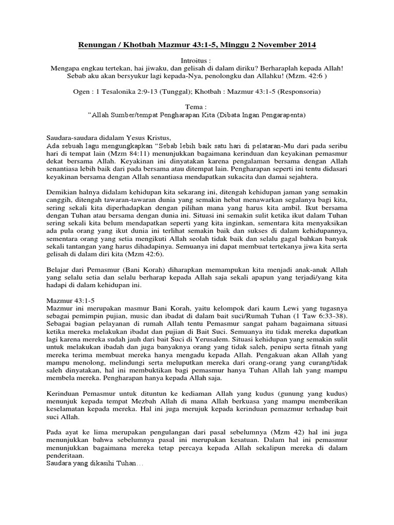 Ilustrasi Khotbah Budianto Sianturi. Setiap manusia benda momen atau suasana pasti memiliki kenangan tersendiri. Saudara-saudara Yang Dikasihi Tuhan Yesus Kristus keadaan hidup yang baik dan Umur panjang pastilah menjadi dambaan setiap orang yang hidup di dunia ini.