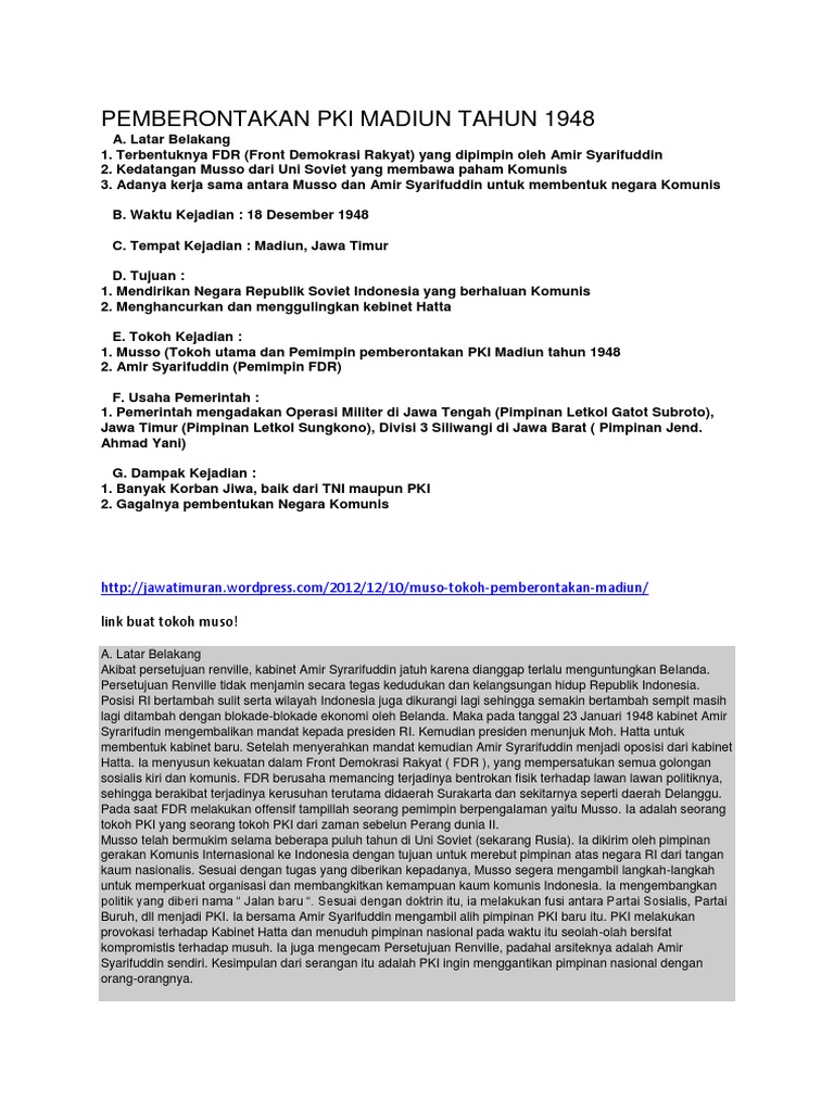 Pemberontakan Pki Di Madiun Dan G30s Pki Muharram U