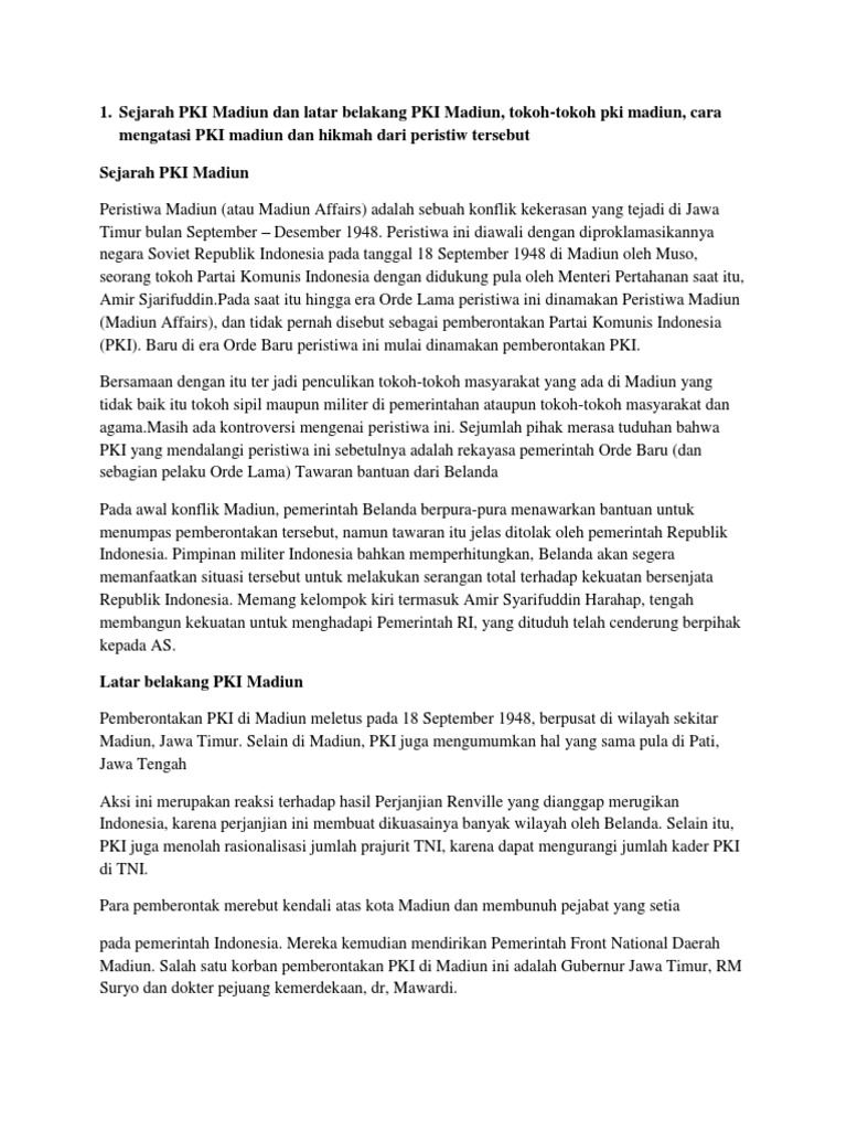 Makalah Sejarah Tentang Pemberontakan PKI. Pada tanggal 18 September itu telah meletus pemberontakan PKI di Madiun. Latar Belakang Terjadinya Pemberontakan.