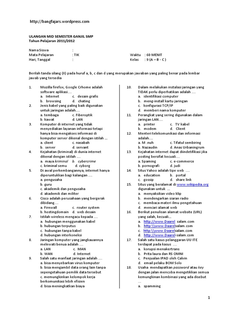 Lengkap 70 Contoh Soal Uas Tik Kelas 9 Smp Mts Semester Genap Terbaru Bospedia