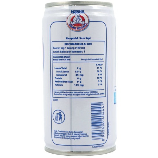Nggak hanya untuk organ di dalam tubuh manfaat susu beruang juga dapat mencegah terjadinya kerusakan kulit. Susu Sapi JUMLAH PERSAJIAN AKG komposisi AKG Lemak Total 7g 11 Lemak jenuh 5g 28 Kolesterol 25 mg 8 Protein 6g 10 Karbohidrat total 9g 3 Natrium 115 mg 5 KOMPOSISI BEAR BRAND. Harga Bahan baku komposisi Bear Brand adalah susu sapi ini untuk yg kaleng putih ya kalau yg lain seperti yg Bear Brand gold malt itu ada campuran lain2 maltodekstrin sari malt gula pati modifikasi pemantap kalsium ka.