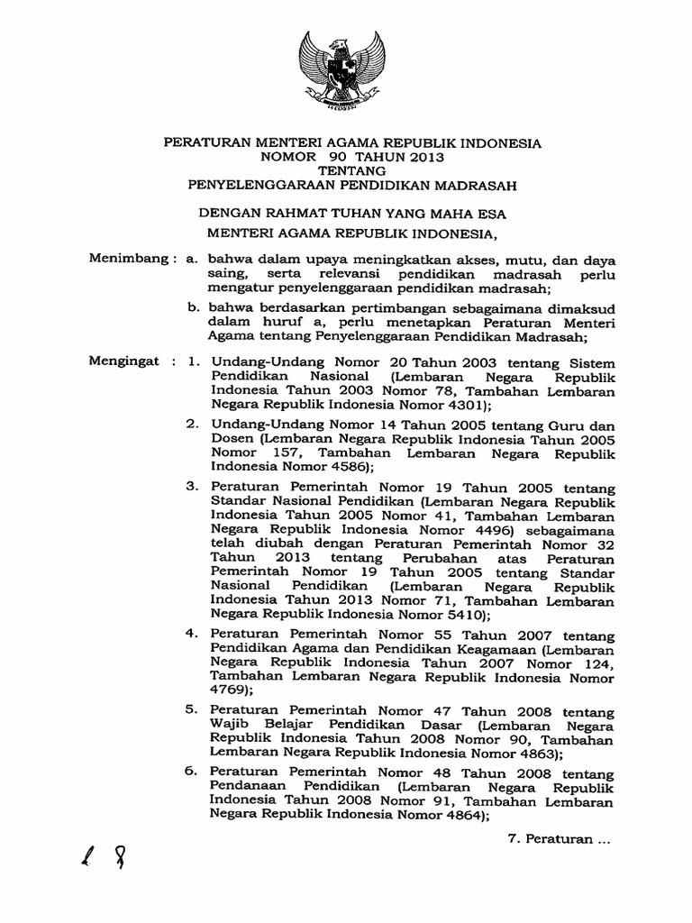 Pma No 90 Tahun 2013 Penyelenggaraan Pendidikan Madrasah Pdf Document