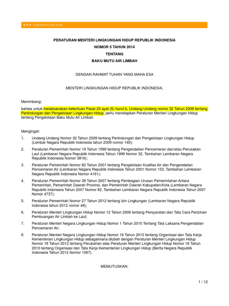 Permen Lh 5 2014 Baku Mutu Air Limbah