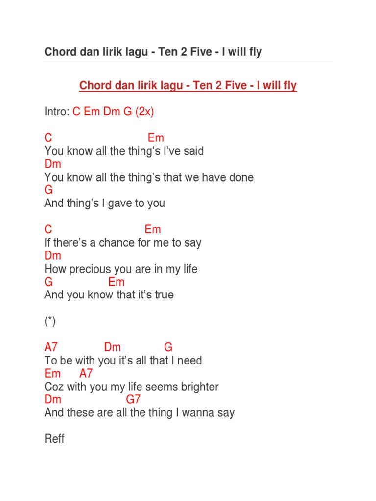 Chord Dasar Ten2Five - You. I Will Fly chords by ten2five. Please write comments if you find anything incorrect or you want to share more information about the song above.