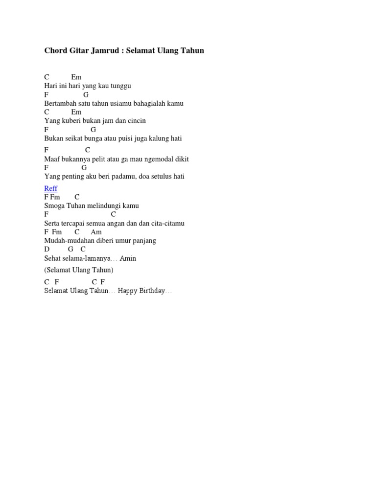 Jamrud ulang tahun chord. C g panjang umurnya serta mulia jamrud chord dan lirik lagu selamat ulang tahun lirik chord. Jamrud - JAUH Andaikan JAMRUD - Senandung Raja Singa. Kami slalu berdoa agar kau tetap setia.