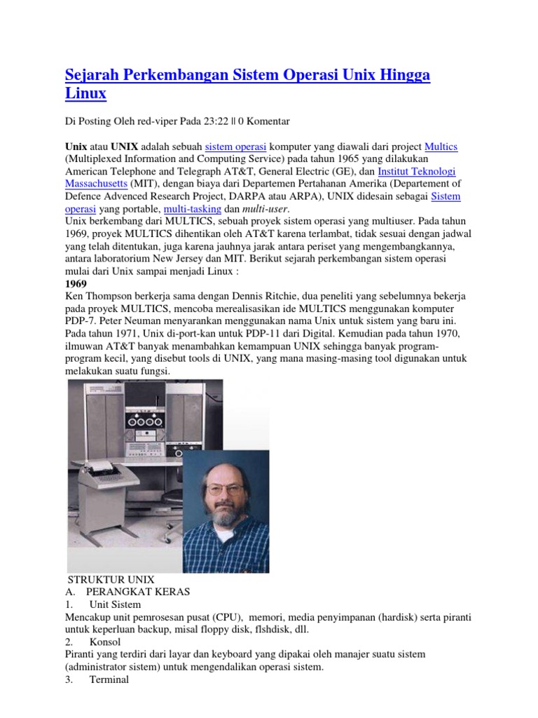 Sejarah Perkembangan Sistem Operasi Unix Hingga Linux Docx Document