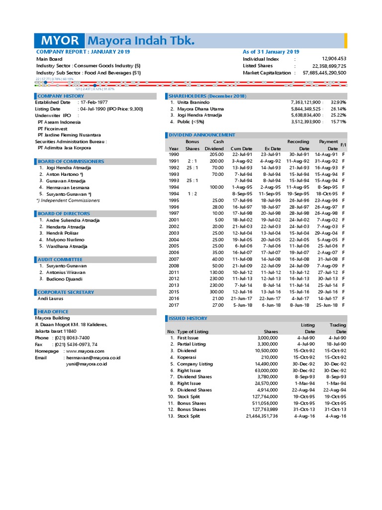 Rendy Bayu Adha NPM. On Friday afternoon February 28 2014 there was a fire in one unit of the Companys factory buildings. Laporan keuangan Mayora Indah Tbk kode saham MYOR dapat anda download melalui link berikut.
