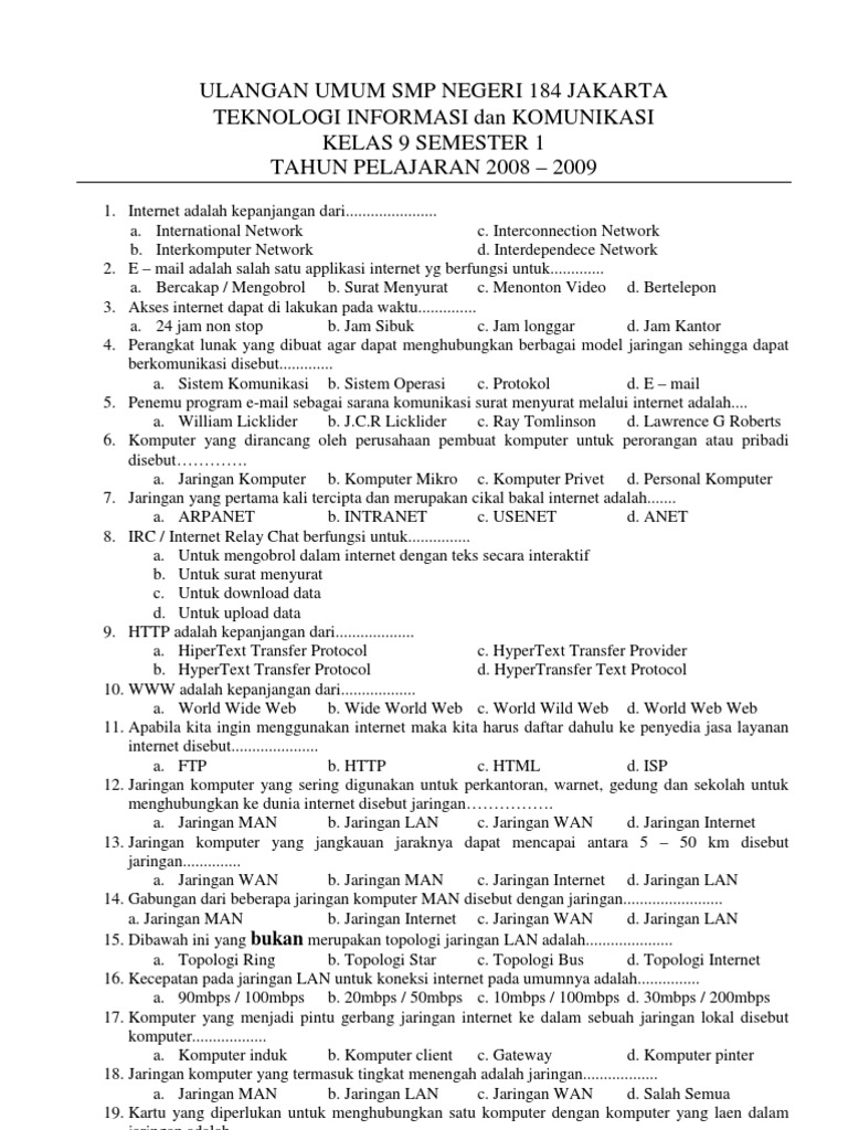 Kunci Jawaban Lks Tik Kelas 9 Semester 1