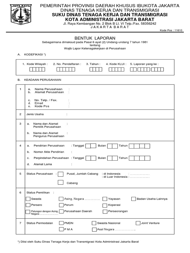 Wajib Lapor Perusahaan Depnaker Ketenagakerjaan Jasa Lainnya Di Carousell